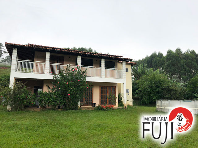 Chácara com casa composta por 03 suítes – sendo 01 com varanda. Sala de estar integrada com cozinha, lavanderia coberta e varanda em L.