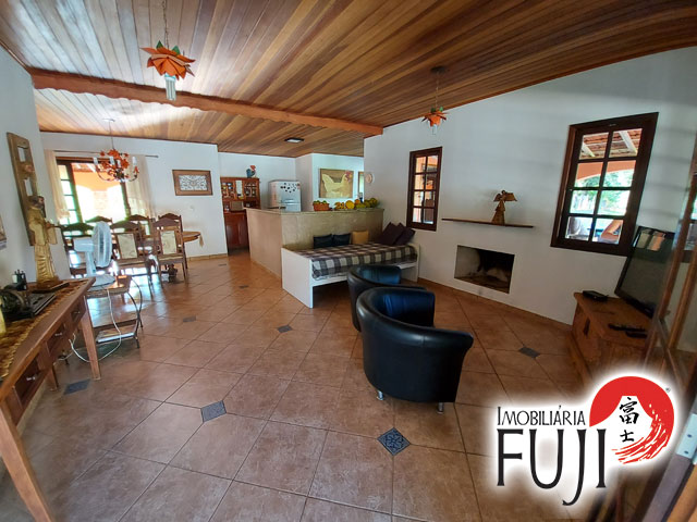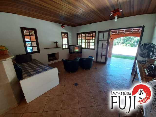 Chácara com casa composta por 03 dormitórios, ampla sala de estar com lareira e integrada com sala de jantar e cozinha, 02 Wc sociais e área de serviços coberta.