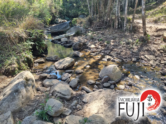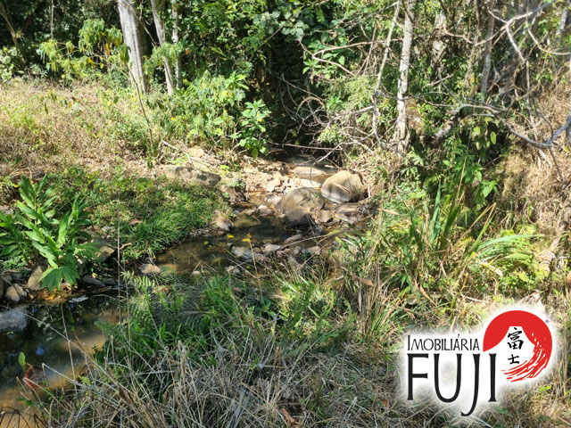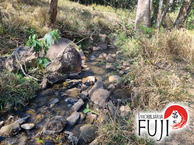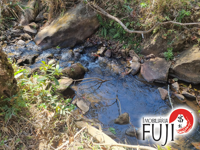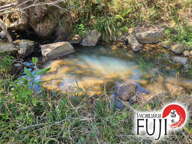 Água de nascente própria e riacho que percorre o meio da propriedade.